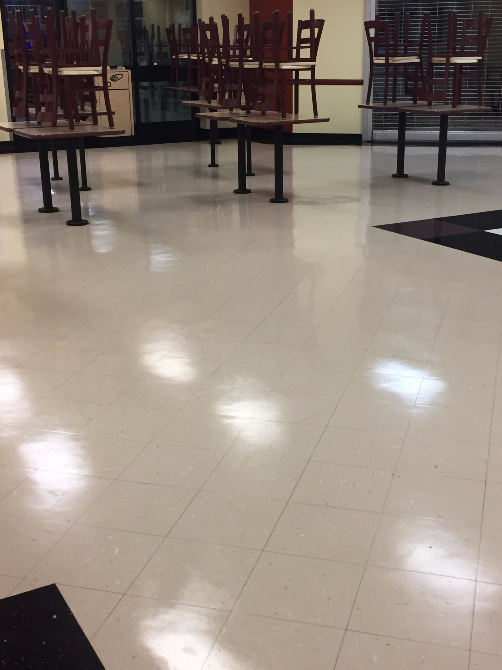 Your floors, that is. If you have any area that is heavily traveled over like a school, office, or cafeteria hallway, oftentimes the shine of a new wax coat will wear off pretty fast. Call us today for a free quote on a new wax coat! We'll strip your floors and put a fresh coat of wax on so shiny, you'll see yourself in it!